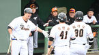 [OSEN=오키나와(일본), 조은정 기자]2일 일본 오키나와 구시카와 구장에서 롯데 자이언츠와 한화이글스의 스프링캠프 연습게임이 열렸다.1회초 무사 1루 한화 페라자가 투런 홈런을 날린 뒤 더그아웃에서 축하를 받고 있다. 2024.03.