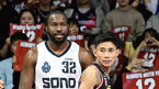 [OSEN=안양, 지형준 기자] 3일 오후 안양실내체육관에서 2023-2024 정관장 프로농구 정규리그 안양 정관장과 고양 소노의 경기가 열렸다.1쿼터 소노 오누아쿠가 정관장 정효근을 앞에 두고 폭발적인 인유어페이스 덩크를 하고 있다.