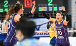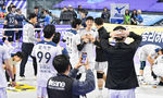 [OSEN=김천, 이석우 기자] 6일 김천실내체육관에서 도드람 2023-2024 V리그 한국도로공사와 현대건설의 경기가 열렸다. 한국도로공사 선수들이 홈 마지막 경기에서 세트 스코어 3-2로 승리한 후 김종민 감독과 하이파이브를 하고 있