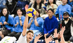 [OSEN=계양체(인천), 박준형 기자] 6일 오후 인천계양체육관에서 '2023-2024 도드람 V리그' 남자부 대한항공과 우리카드의 경기가 진행됐다.2세트 우리카드 아르템이 강타를 날리고 있다. 2024.03.06 / soul1014@osen.co.kr