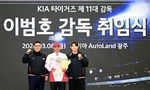 [OSEN=광주, 최규한 기자] KIA 타이거즈 이범호 감독 취임식이 8일 오후 광주 서구 기아 오토랜드 광주 대강당에서 열렸다.2년간 계약금 3억 원, 연봉 3억 원 등 총액 9억 원에 계약한 KIA 이범호 감독. 그는 대구고를 졸업한 뒤 2000년