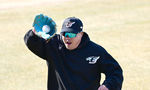 [OSEN=대전, 최규한 기자] 10일 대전 한화생명이글스파크에서 ‘2024 신한은행 SOL KBO리그’ 시범경기 한화 이글스와 삼성 라이온즈의 경기가 열린다.경기를 앞두고 한화 류현진이 외야로 날아오는 타구를 피하고 있다. 2024.03.10 / dr