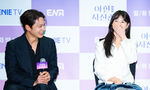 [OSEN=민경훈 기자] 11일 오후 서울 마포구 스탠포드 호텔 코리아 그랜드볼룸에서 지니TV 오리지널 '야한 사진관' 제작발표회가 열렸다.배우 주원과 권나라가 기자회견 중 환하게 웃고 있다. 2024.03.11 / rumi@osen.co.kr