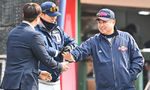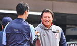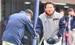 [OSEN=부산, 이석우 기자] 11일 부산 사직구장에서 2024 신한 SOL 뱅크 KBO 리그 롯데 자이언츠와 두산 베어스의 시범경기가 열렸다. 두산 베어스 박흥식 코치가 롯데 자이언츠 박승욱과 인사를 하고 있다. 2024.03.11 / foto0307@osen.co.kr