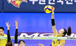 [OSEN=수원, 최규한 기자] 12일 오후 경기도 수원 실내체육관에서 ‘도드람 2023-2024 V리그’ 여자부 현대건설과 흥국생명의 경기가 열렸다.1세트, 현대건설 양효진이 공격을 시도하고 있다. 2024.03.12 / dreamer@osen.co.kr