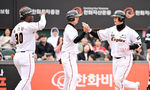 [OSEN=대전, 최규한 기자] 12일 대전 한화생명이글스파크에서 ‘2024 신한 SOL Bank KBO리그’ 시범경기 한화 이글스와 KIA 타이거즈의 경기가 열렸다.1회말 1사 1, 2루 상황 한화 노시환이 역전 우월 스리런포를 날리고 홈을 밟은 뒤 페