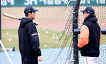 [OSEN=대전, 최규한 기자] 12일 대전 한화생명이글스파크에서 ‘2024 신한 SOL Bank KBO리그’ 시범경기 한화 이글스와 KIA 타이거즈의 경기가 열린다.경기를 앞두고 한화 하주석과 김우석 코치가 훈련 중 대화를 나누고 있다. 2024.03.12
