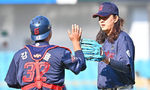 [OSEN=대구, 이석우 기자] 14일 대구 삼성라이온즈파크에서 2024 신한 SOL 뱅크 KBO 리그 삼성 라이온즈와 롯데 자이언츠의 시범경기가 열렸다. 롯데 자이언츠 김태형 감독이 삼성 라이온즈에 7-0으로 완승하고 전준우와 하이파이브