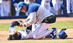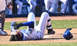 [OSEN=대구, 이석우 기자] 14일 대구 삼성라이온즈파크에서 2024 신한 SOL 뱅크 KBO 리그 삼성 라이온즈와 롯데 자이언츠의 시범경기가 열렸다. 삼성 라이온즈 구자욱이 6회말 1사 롯데 자이언츠 진해수의 투구에 손을 맞고 통증을 호
