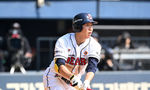 [OSEN=잠실, 이대선 기자] 14일 서울 잠실야구장에서 ‘2024 신한 SOL Bank KBO리그’ 시범경기 두산 베어스와 KIA 타이거즈의 경기가 열렸다.4회말 무사 2,3루에서 두산 강승호가 중전 적시타를 치고 있다. 2024.03.14 /sunday@osen.co.kr