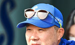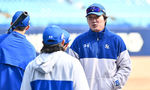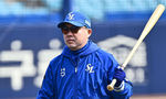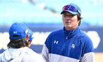 [OSEN=대구, 이석우 기자] 14일 대구 삼성라이온즈파크에서 2024 신한 SOL 뱅크 KBO 리그 삼성 라이온즈와 롯데 자이언츠의 시범경기가 열렸다. 삼성 라이온즈 박진만 감독이 선수들의 훈련을 지켜보다 공을 치고 있다. 2024.03.14 / foto0