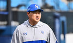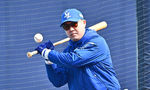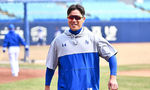 [OSEN=대구, 이석우 기자] 14일 대구 삼성라이온즈파크에서 2024 신한 SOL 뱅크 KBO 리그 삼성 라이온즈와 롯데 자이언츠의 시범경기가 열렸다. 삼성 라이온즈 박진만 감독이 선수들의 훈련을 지켜보다 공을 치고 있다. 2024.03.14 / foto0