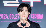 [OSEN=민경훈 기자] 영화 '댓글부대'의 언론배급시사회 및 기자간담회가 15일 오후 서울 용산아이파크몰 내 CGV 용산에서 열렸다.배우 홍경이 무대 위에서 포토타임을 갖고 있다. 2024.03.15 / rumi@osen.co.kr