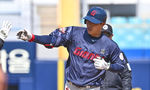 [OSEN=대구, 이석우 기자] 15일 대구 삼성라이온즈파크에서 2024 신한 SOL 뱅크 KBO 리그 삼성 라이온즈와 롯데 자이언츠의 시범경기가 열렸다. 롯데 자이언츠 고승민이 1회초 우월 솔로 홈런을 치고 하이파이브를 하고 있다. 2024.03.15