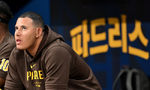 [OSEN=고척, 이대선 기자] 16일 서울 고척스카이돔에서 ‘메이저리그 월드투어 서울 시리즈 2024’ LA 다저스의 공식 훈련이 진행됐다.샌디에이고 파드리스 매니 마차도가 LA 다저스의 훈련을 바라보고 있다. 2024.03.16 /sunday@osen.co.kr