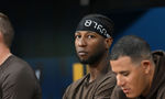 [OSEN=고척, 이대선 기자] 16일 서울 고척스카이돔에서 ‘메이저리그 월드투어 서울 시리즈 2024’ LA 다저스의 공식 훈련이 진행됐다.샌디에이고 파드리스 주릭슨 프로파가 LA 다저스의 훈련을 바라보고 있다. 2024.03.16 /sunday@osen.co.k