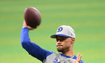 [OSEN=고척, 이대선 기자] 16일 서울 고척스카이돔에서 ‘메이저리그 월드투어 서울 시리즈 2024’ LA 다저스의 공식 훈련이 진행됐다.LA 다저스 야마모토 요시노부가 캐치볼을 하고 있다. 2024.03.16 /sunday@osen.co.kr
