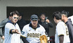 [OSEN=박준형 기자] 샌디에이고 선수단이 16일 오후 서울 용산 어린이정원 내 어린이야구장에서 진행된 샌디에이고 파드리스 유소년 클리닉 행사에 참석해 유소년 선수들과 인사를 하고 있다. (사진공동취재단) 2024.03.16 / soul1014@os