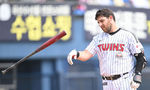 [OSEN=잠실, 김성락 기자] 16일 오후 서울 잠실야구장에서 ‘2024 신한 SOL BANK KBO리그’ 시범경기 LG 트윈스와 키움 히어로즈의 경기가 열렸다.8회말 2사 만루 LG 김민수가 몸에 볼을 맞은 뒤 고통스러워 하고 있다. 2024.03.16/ksl0919@osen.