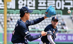 [OSEN=인천, 민경훈 기자] 16일 오후 인천 SSG랜더스필드에서 ‘2024 신한 SOL Bank KBO리그’ 시범경기 SSG 랜더스와 두산 베어스의 경기가 열렸다. 3회말 2사 두산 박지환의 1루수 앞 땅볼 때 두산 선발 김동주가 토스를 받고 있다. 2024.0