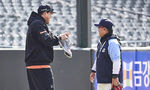 [OSEN=부산, 이석우 기자] 12년만에 한화 이글스로 복귀한 류현진이 사직야구장을 찾아 한달음에 달려가 인사한 이는 누구일까?롯데 자이언츠 김광수 코치이다.16일 롯데 자이언츠와의 2024 신한 SOL Bank KBO 리그 시범경기를 앞두고
