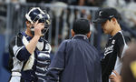 [OSEN=고척, 이대선 기자] 17일 서울 고척스카이돔에서 ‘메이저리그 월드투어 서울 시리즈 2024’ 샌디에이고 파드리스와 팀 코리아의 경기가 열렸다.1회말 무사 만루 대한민국 문동주가 3연속 볼넷을 허용, 코치가 마운드에 올라