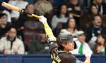 [OSEN=고척, 이대선 기자] 17일 서울 고척스카이돔에서 ‘메이저리그 월드투어 서울 시리즈 2024’ 샌디에이고 파드리스와 팀 코리아의 경기가 열렸다.3회말 2사 1루에서 샌디에이고 파드리스 김하성이 좌중간 안타를 치고 있다. 202