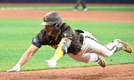 [OSEN=고척, 이대선 기자] 17일 서울 고척스카이돔에서 ‘메이저리그 월드투어 서울 시리즈 2024’ 샌디에이고 파드리스와 팀 코리아의 경기가 열렸다.3회말 2사 1루에서 샌디에이고 파드리스 김하성이 좌중간 안타를 치고 송구에