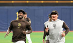 [OSEN=고척, 이대선 기자] 17일 서울 고척스카이돔에서 ‘메이저리그 월드투어 서울 시리즈 2024’ 샌디에이고 파드리스와 팀 코리아의 경기가 열렸다.경기에 앞서 샌디에이고 파드리스 주릭슨 프로파와 김하성이 러닝 훈련을 하