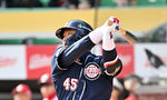 [OSEN=고척, 이대선 기자] 17일 서울 고척스카이돔에서 ‘메이저리그 월드투어 서울 시리즈 2024’ LA 다저스와 키움 히어로즈의 연습경기가 진행됐다.7회초 무사 1, 3루 LA 바네스가 1타점 적시타를 날리고 있다. 2024. 03.17 / sunday@osen.c