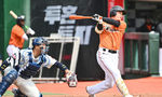 [OSEN=부산, 이석우 기자] 17일 부산 사직구장에서 2024 신한 SOL 뱅크 KBO 리그 롯데 자이언츠와 한화 이글스의 시범경기가 열렸다. 한화 이글스 정은원이 2회초 1사 2루 우전 안타를 치고 있다. 2024.03.17 / foto0307@osen.co.kr