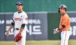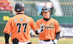 [OSEN=부산, 이석우 기자] 17일 부산 사직구장에서 2024 신한 SOL 뱅크 KBO 리그 롯데 자이언츠와 한화 이글스의 시범경기가 열렸다. 한화 이글스 정은원이 2회초 1사 2루 우전 안타를 치고 하이파이브를 하고 있다. 2024.03.17 / foto0307@ose