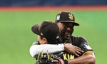 [OSEN=고척, 이대선 기자] 17일 서울 고척스카이돔에서 ‘메이저리그 월드투어 서울 시리즈 2024’ 샌디에이고 파드리스와 팀 코리아의 경기가 열렸다.경기 종료 후 샌디에이고 파드리스 김하성이 잰더 보가츠와 승리의 기쁨을 나