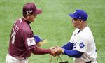 [OSEN=고척, 이대선 기자] 17일 서울 고척스카이돔에서 ‘메이저리그 월드투어 서울 시리즈 2024’ LA 다저스와 키움 히어로즈의 연습경기가 진행됐다.경기 시작에 앞서 키움 홍원기 감독과 LA 로버츠 감독이 선물을 교환하고 있다.