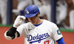 [OSEN=고척, 이대선 기자] 17일 서울 고척스카이돔에서 ‘메이저리그 월드투어 서울 시리즈 2024’ LA 다저스와 키움 히어로즈의 연습경기가 진행됐다.2회초 1사 1, 3루 오타니가 헛스윙 삼지아웃 되고 있다. 2024. 03.17 / sunday@osen.co.kr