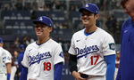 [OSEN=고척, 이대선 기자] 17일 서울 고척스카이돔에서 ‘메이저리그 월드투어 서울 시리즈 2024’ LA 다저스와 키움 히어로즈의 연습경기가 진행됐다.LA 오타니 야마모토, 오타니가 팬들의 환호에 미소 짓고있다.2024. 03.17 / sunday@ose