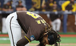 [OSEN=고척, 이대선 기자] 17일 서울 고척스카이돔에서 ‘메이저리그 월드투어 서울 시리즈 2024’ 샌디에이고 파드리스와 팀 코리아의 경기가 열렸다.4회말 샌디에이고 타티스 주니어가 1루수 파울플라이로 아웃된뒤 아쉬워하고