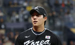 [OSEN=고척, 이대선 기자] 17일 서울 고척스카이돔에서 ‘메이저리그 월드투어 서울 시리즈 2024’ 샌디에이고 파드리스와 팀 코리아의 경기가 열렸다.4회말 대한민국 원태인이 더그아웃으로 이동하고 있다. 2024.03.17 /sunday@osen.co.kr