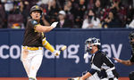 [OSEN=고척, 이대선 기자] 17일 서울 고척스카이돔에서 ‘메이저리그 월드투어 서울 시리즈 2024’ 샌디에이고 파드리스와 팀 코리아의 경기가 열렸다.5회초 샌디에이고 마쓰이 유키가 마운드에 올라 힘차게 공을 뿌리고 있다. 2024.