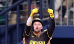 [OSEN=고척, 이대선 기자] 17일 서울 고척스카이돔에서 ‘메이저리그 월드투어 서울 시리즈 2024’ 샌디에이고 파드리스와 팀 코리아의 경기가 열렸다.4회말 샌디에이고 잭슨 메릴이 안타를 날린 뒤 세리머니를 하고 있다. 2024.03.17