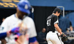 [OSEN=고척, 지형준 기자] 18일 서울 고척스카이돔에서 ‘메이저리그 월드투어 서울 시리즈 2024’ LA 다저스와 팀 코리아의 경기가 열렸다.1회말을 막아낸 팀 코리아 선발 곽빈이 더그아웃으로 향하고 있다. 2024.03.18 / jpnews@osen.co.kr