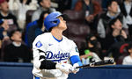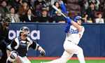 [OSEN=지형준 기자] 18일 서울 고척스카이돔에서 ‘메이저리그 월드투어 서울 시리즈 2024’ LA 다저스와 팀 코리아의 경기가 열렸다.3회말 1사 1,2루에서 다저스 윌 스미스가 역전 적시타를 날리고 있다. 2024.03.18 /jpnews@osen.co.kr