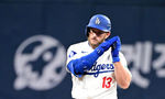 [OSEN=지형준 기자] 18일 서울 고척스카이돔에서 ‘메이저리그 월드투어 서울 시리즈 2024’ LA 다저스와 팀 코리아의 경기가 열렸다.3회말 무사 1루에서 다저스 오타니가 외야 플라이로 물러나며 더그아웃에서 동료선수들과 이야
