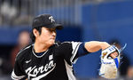 [OSEN=고척, 지형준 기자] 18일 서울 고척스카이돔에서 ‘메이저리그 월드투어 서울 시리즈 2024’ LA 다저스와 팀 코리아의 경기가 열렸다.1회말 팀 코리아 선발 곽빈이 힘차게 공을 던지고 있다. 2024.03.18 / jpnews@osen.co.kr