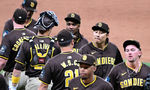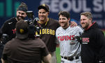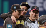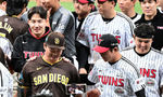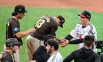 [OSEN=고척, 지형준 기자] 18일 서울 고척스카이돔에서 ‘메이저리그 월드투어 서울 시리즈 2024’ 샌디에이고 파드리스와 LG 트윈스의 연습경기가 진행됐다.경기를 마치고 승리한 샌디에이고 선수들이 인사를 나누고 있다. 2024.03.
