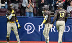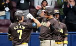 [OSEN=지형준 기자] 18일 서울 고척스카이돔에서 ‘메이저리그 월드투어 서울 시리즈 2024’ 샌디에이고 파드리스와 LG 트윈스의 연습경기가 진행됐다.6회초 1사 1루에서 샌디에이고 김하성이 투런포를 날리고 마차도와 세리머니를