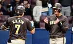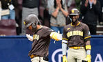 [OSEN=지형준 기자] 18일 서울 고척스카이돔에서 ‘메이저리그 월드투어 서울 시리즈 2024’ 샌디에이고 파드리스와 LG 트윈스의 연습경기가 진행됐다.6회초 1사 1루에서 샌디에이고 김하성이 투런포를 날리고 홈을 밟고 있다. 2024.