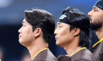 [OSEN=고척, 지형준 기자] 18일 서울 고척스카이돔에서 ‘메이저리그 월드투어 서울 시리즈 2024’ 샌디에이고 파드리스와 LG 트윈스의 연습경기가 진행됐다.경기 시작을 앞두고 샌디에이고 고우석과 김하성이 국기에 대한 경례를