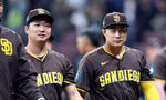 [OSEN=고척, 지형준 기자] 18일 서울 고척스카이돔에서 ‘메이저리그 월드투어 서울 시리즈 2024’ 샌디에이고 파드리스와 LG 트윈스의 연습경기가 진행됐다.경기 시작을 앞두고 샌디에이고 고우석과 김하성이 경기를 준비하고 있