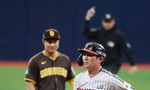 [OSEN=지형준 기자] 18일 서울 고척스카이돔에서 ‘메이저리그 월드투어 서울 시리즈 2024’ 샌디에이고 파드리스와 LG 트윈스의 연습경기가 진행됐다.2회초 1사 2루에서 샌디에이고 김하성이 선제 투런포를 날리며 마차도의 축하